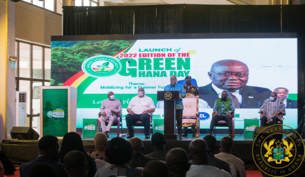The President of the Republic, Nana Addo Dankwa Akufo-Addo, on Tuesday, 1st March 2022, launched the 2022 edition of “Green Ghana Day”, with a commitment to planting some twenty million trees this year, as part of Government’s aggressive afforestation and reforestation programme.
